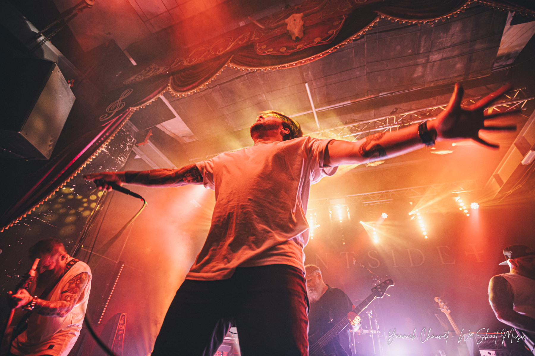 The music didn’t let up. It stayed loud, urgent, relentless, exactly as it had been from the start. Guitars still tore through the room, drums still drove forward without mercy, the bass still hit like blunt force. Nothing softened. Nothing gave.